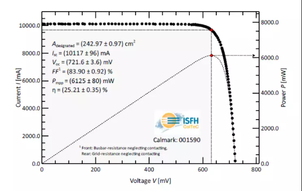 The Cell R&D Center has also achieved an innovative breakthrough in high- efficiency P-type monocrystalline solar cell product technology. Again tested by ISFH (Calibration Mark: 001592), the efficiency of a commercial size P-type
