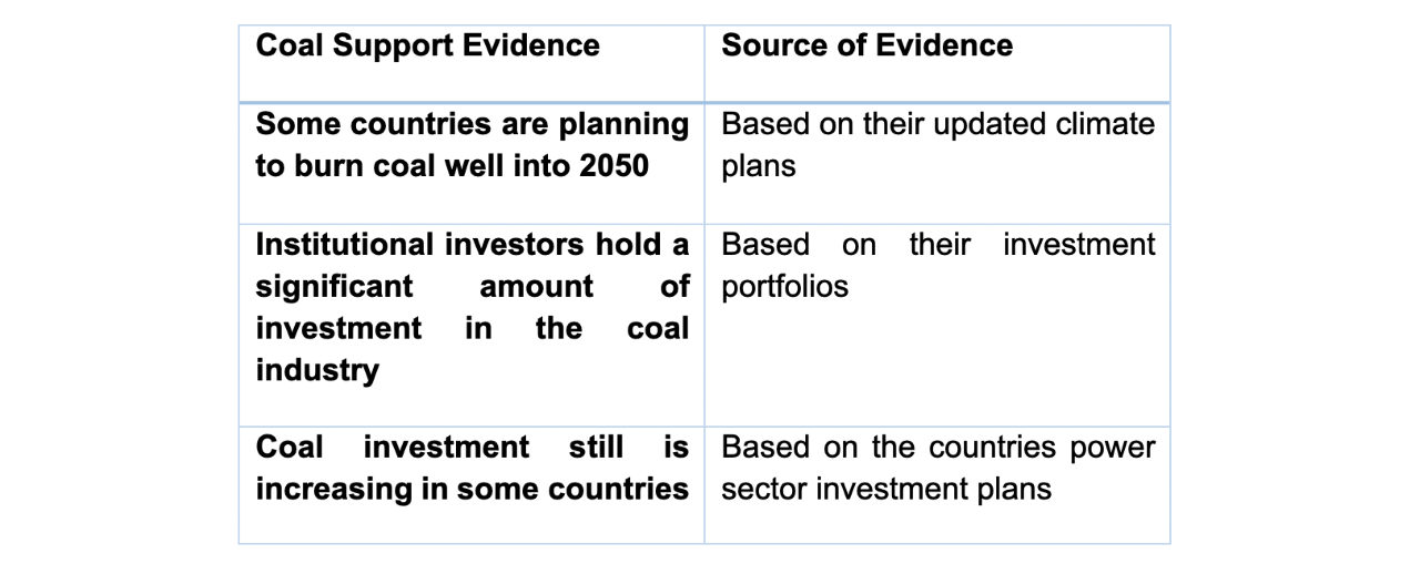 A recent study shows that 5% of coal-fired power plants are responsible for around 73% of the energy sector's carbon emissions (Don Grant, 2021). Meanwhile, the emissions component and quantity from natural gas is significantly less than coal. Despite the devastating effect of coal, under the climate plans and targets, coal support continues in some countries, and there is not enough tendency to phase out coal from their power generation mix. According to their long-term energy plans, these countries are planning to burn coal well into 2050. At the same time, in addition to the banks, which continue funding the coal projects and lending to the coal investors, the institutional investors continue to allocate a significant portion of their portfolios to the coal industry. According to recent research (Groundbreaking Research Reveals the Financiers of the Coal Industry, 2021) as of January 2021, Institutional investors hold around USD one trillion in the coal industry.