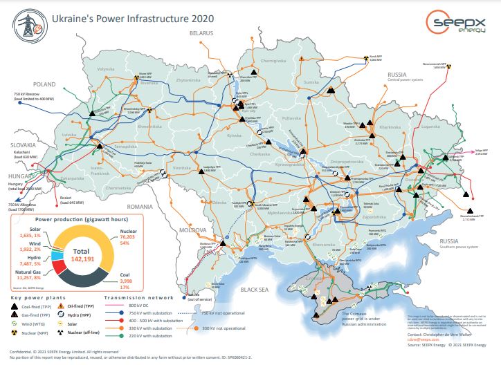 Map of Ukraine’s power infrastructure, credit: SEEPX