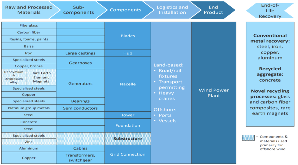 Meeting U.S. onshore and offshore wind goals will "require significant expansion of domestic supply chains, according to DOE. The Biden administration has a goal of developing 30 GW of offshore wind by 2030.