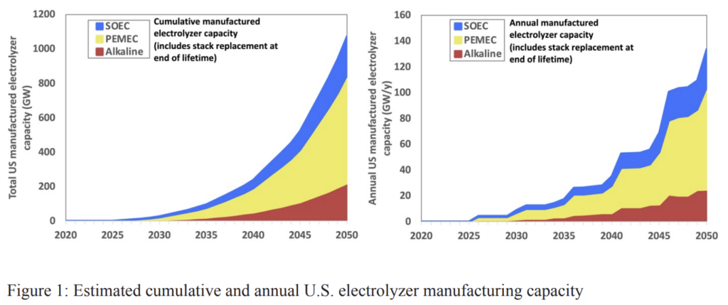 However, looking ahead to 2050, DOE expects the market for green hydrogen to grow to 100 MMT/yr with 1,000 GW of electrolyzer capacity.