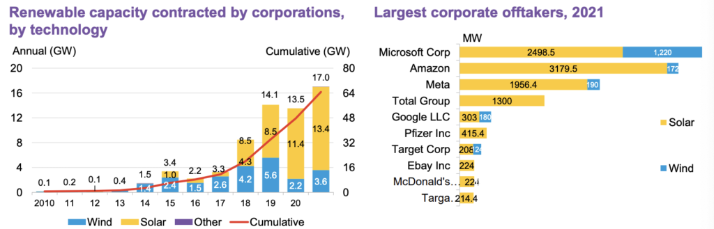 Corporate demand for clean energy remained a key driver of clean energy investment and deployment in 2021, the research found.