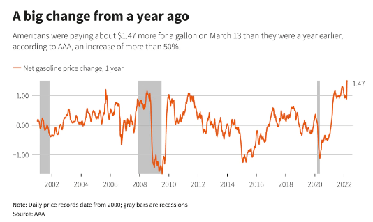 Retail gasoline prices fell for the second straight day on Sunday to $4.325 per gallon, below a record of $4.331 hit on Friday, according to American Automobile Association data. Russia's invasion of Ukraine in late February has roiled energy markets worldwide since, bringing more expensive fuel costs to motorists who have also been hit by higher inflation.