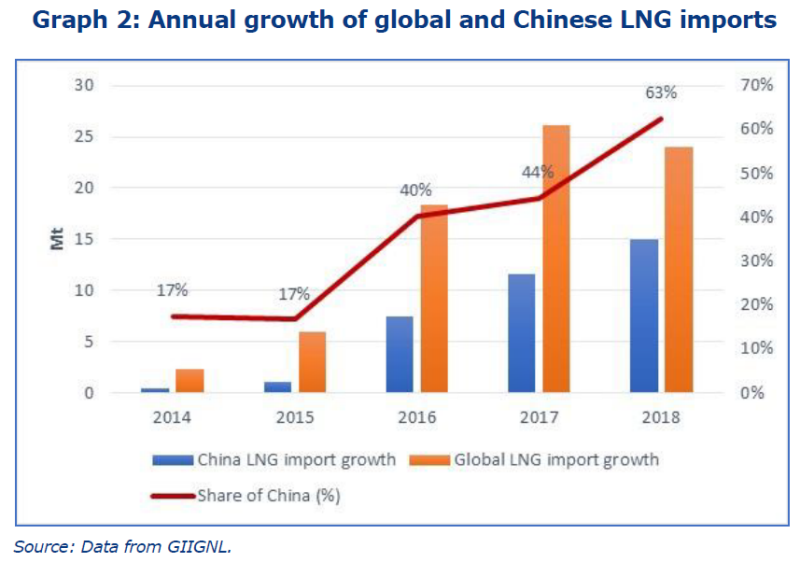 here is now a bullish outlook for future global LNG demand which has encouraged companies to sanction additional LNG projects, based on the anticipated supply shortage. China’s gas imports can be expected to continue to grow strongly, from 120 billion cubic meters (bcm) in 2018 to up to 300 bcm by 2030.