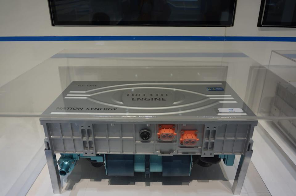 A model of a hydrogen fuel-cell engine developed by Sinosynergy is displayed at its headquarters in Yunfu, Guangdong province. Photo: Yujie Xue alt=A model of a hydrogen fuel-cell engine developed by Sinosynergy is displayed at its headquarters in Yunfu, Guangdong province. Photo: Yujie Xue>