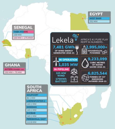 Lekela’s portfolio now consists of over 1GW of fully operational wind assets in Africa, including five operational wind farms in South Africa (624MW), one operational wind farm in Egypt (252MW), one operational wind farm in Senegal (159MW), as well as several development opportunities in Ghana, Senegal and Egypt.
