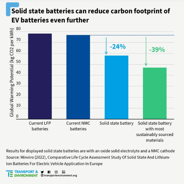 The finding comes courtesy of Transport & Environment (T&E) from Minviro, a company specialised in raw material life-cycle analysis, which compared emerging solid state technology to current battery chemistries.