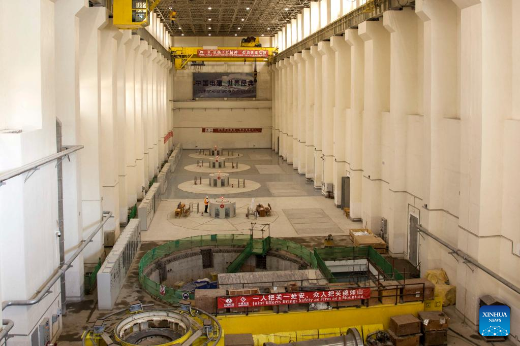 Photo taken on July 21, 2022 shows the Kafue Lower Gorge Power Station under construction in Southern Province, Zambia. Zambian President Hakainde Hichilema on Thursday toured the Kafue Lower Gorge Power Station, a Chinese-built hydropower plant.