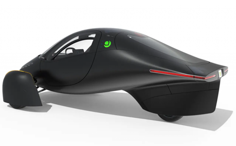 Priced at $25,000, the car is more affordable than most EVs on the U.S. market. It features 465 integrated solar half-cells throughout the exterior of the car — roof, doors, fenders, hood and all. The company estimates that solar power alone can fuel about 70 miles of driving per week.