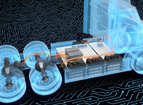 The eCascadia is based on the Detroit ePowertrain, comprising Detroit eAxles—integrating electric motor, transmission and electronics—and batteries.