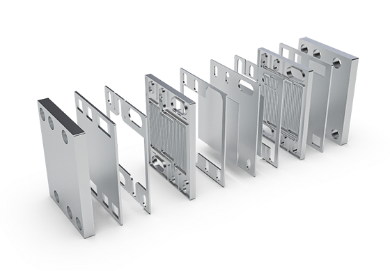 A rendering of a fuel cell stack. Courtesy: Laserax