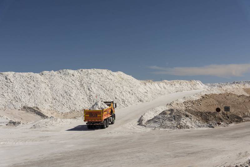 A lorry carries a load of potassium chloride at the Albemarle lithium mine in Calama. Bloomberg