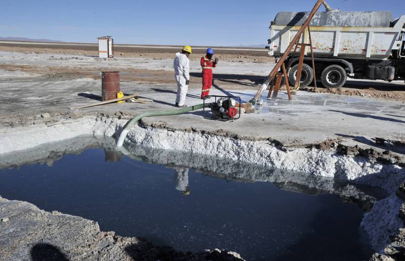 Workers at the Llipi pilot plant at Uyuni Salt Flat, south of Bolivia's capital La Paz. The country has more than 40 per cent of global lithium reserves. AFP