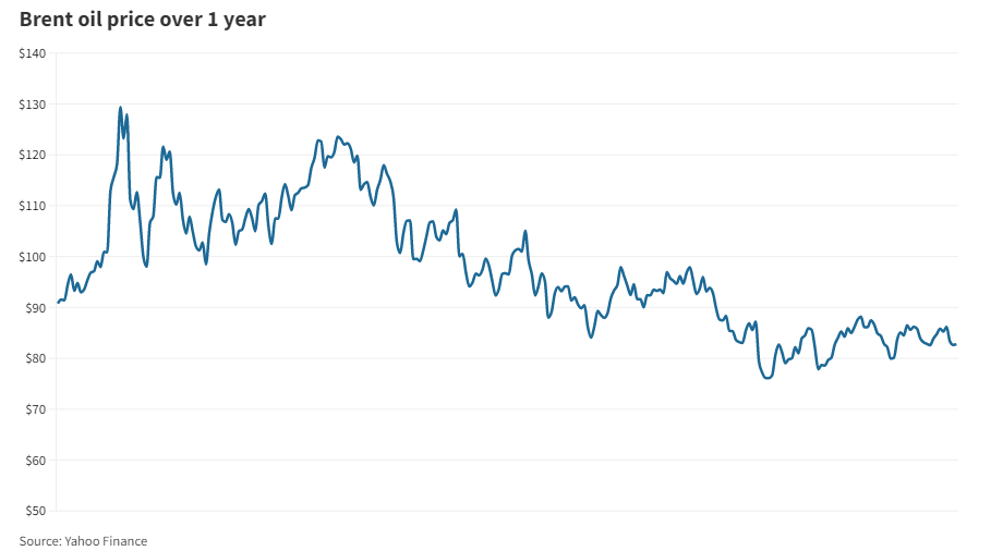 Brent, the global benchmark for two thirds of the world's oil, soared to a notch under $140 a barrel in March last year, the highest in 14 years, after Russia’s military offensive in Ukraine.
