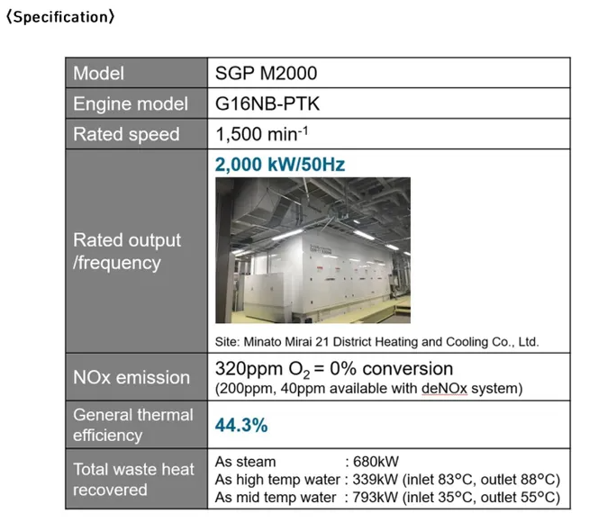 - Achieved electrical efficiency of 44.3%, world's highest-class for 2,000kW natural gas engine