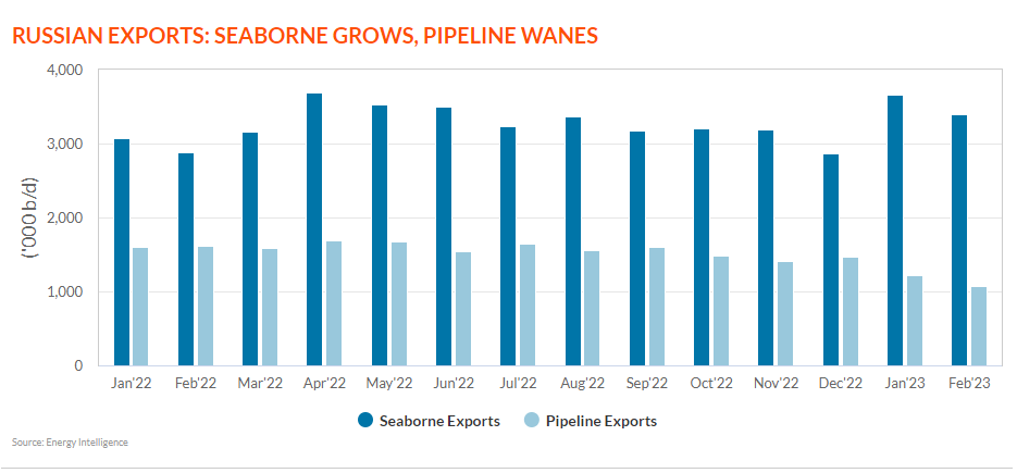 For its part, China took 1.14 million b/d from Russia last month by sea, flat compared with January. However, it also imported 825,000 b/d by pipeline, which means that China remains by far Russia’s largest oil client.