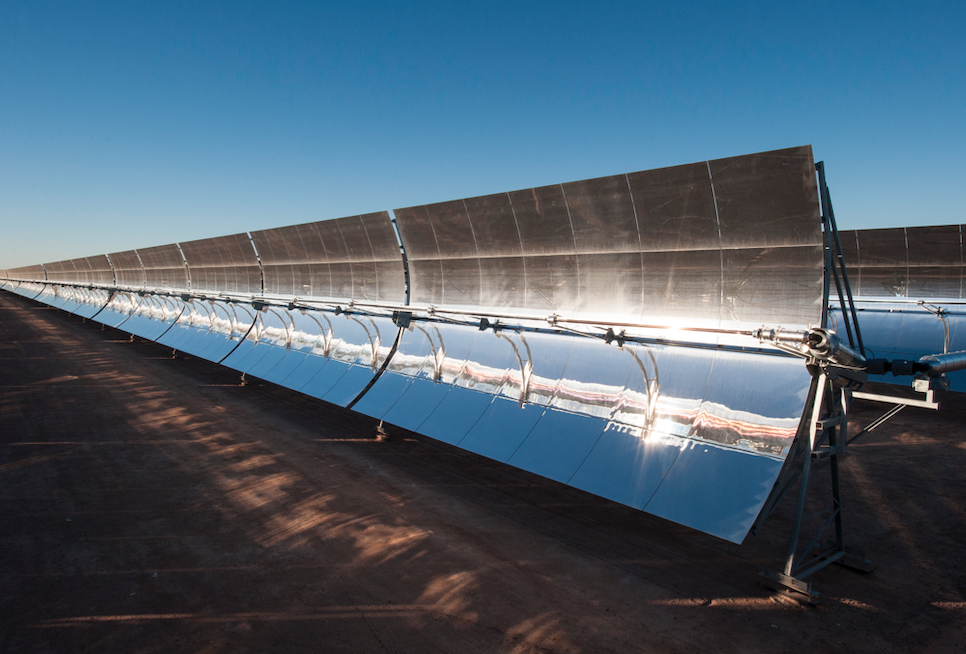 Parabolic trough collectors from a concentrated solar project (Courtesy: Abengoa)