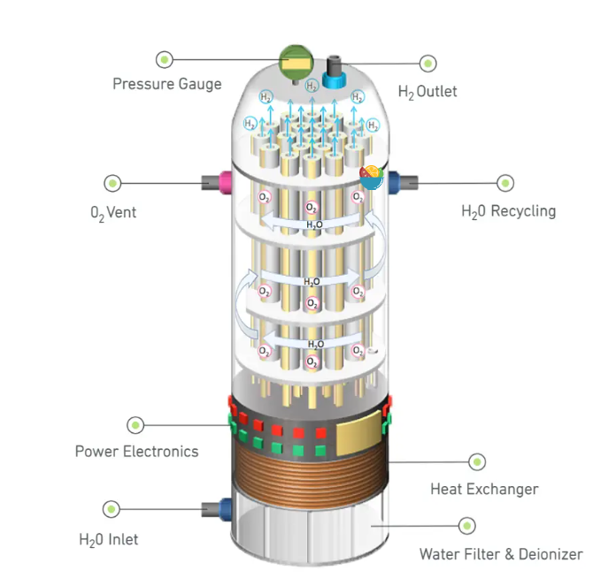 Electrolyzers are devices that separate water into its two components, oxygen and hydrogen.