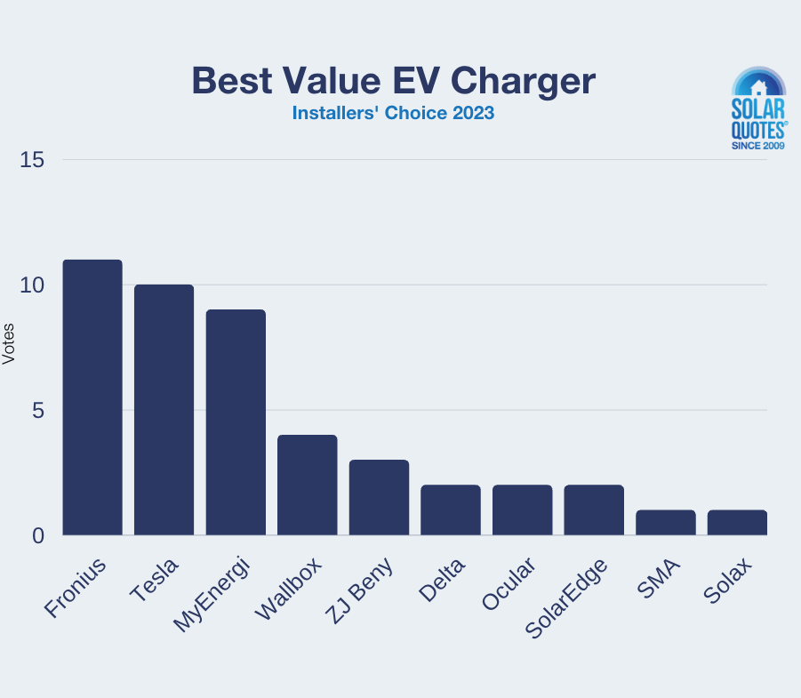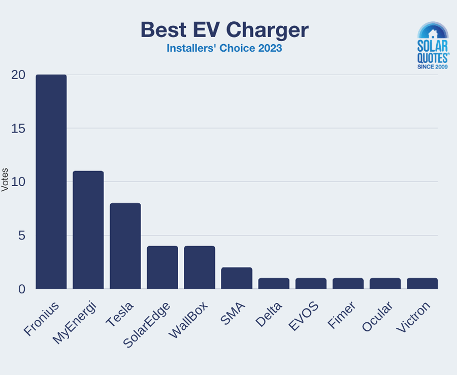 Every year we ask more than 500 installers in the SolarQuotes network which solar products they would trust in their own homes. This year, as well as asking about solar panels, inverters and batteries, we added a rapidly growing sector: electric vehicle (EV) chargers.