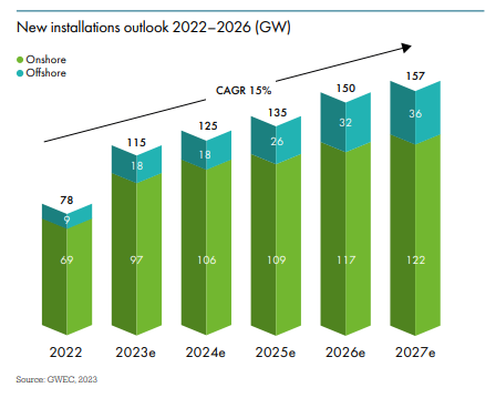 A chart from the Global Wind Report 2023 released on March 27, 2023. /Global Wind Energy Council