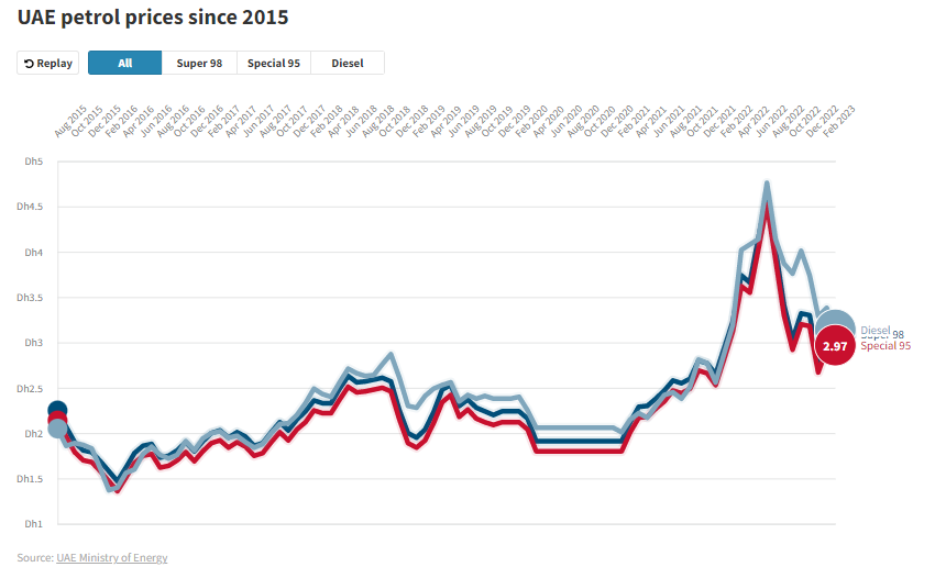 The UAE liberalised petrol prices in 2015 to allow rates to move in line with the market.