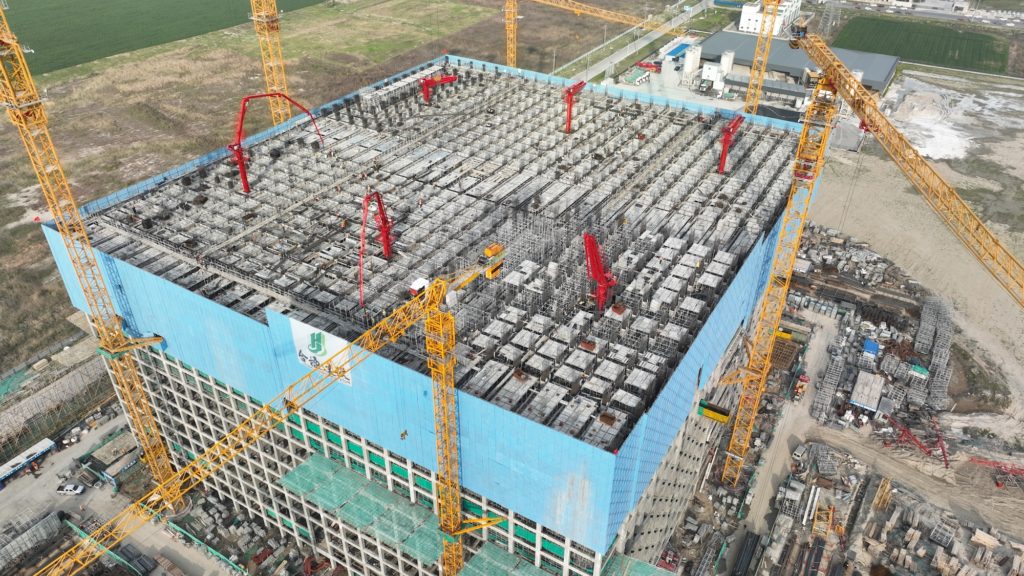Energy Vault's first commercial gravity storage system, a 25 MW/100 MWh facility in Rudong, China, is 75% complete. (Courtesy: Energy Vault)