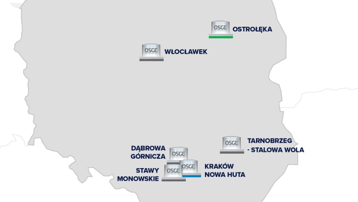 The locations were: Ostro??ka, W?oc?awek, Stawy Monowskie, D?browa Górnicza, Nowa Huta, Tarnobrzeg Special Economic Zone and Warsaw. The company said these are locations with, among others, "high energy-intensive production plants, as well as locations that are optimal for heating system purposes".