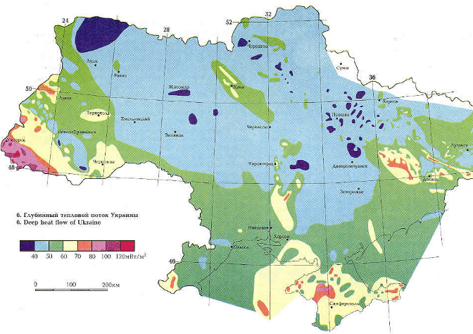 According to geological and structural features, the most promising sites for geothermal developing in Ukraine are the Transcarpathian and Precarpathian depression in the west, and the Steppe Crimea and Black Sea Coast in the south, and the Dnipro-Donets Depression in the east. For the first two regions, geological and geophysical data indicate that rock temperatures at depths of up to 6 kilometers may be in the range of 230 to 275 degrees Celsius.