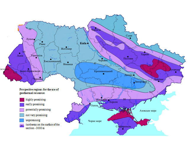 Prospective regions for the use of geothermal resources in Ukraine (source: “Atlas of energy potential of renewable energy in Ukraine