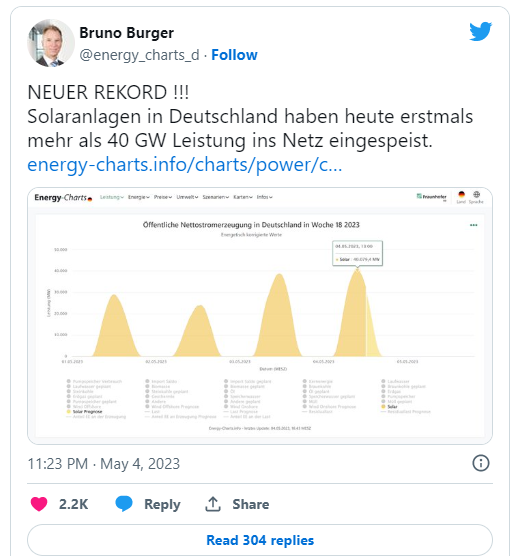 On May 4, the photovoltaic systems in Germany fed more than 40 GW of power into the grid for the first time.