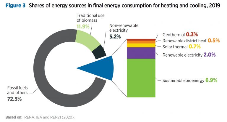 Since 2000, the geothermal sector has grown at an average rate of around 3.5% annually to reach an installed capacity of 16 gigawatt electrical in 2021. There was a slight acceleration in growth of around 5% between 2015 – 2021, but this still accounted for a mere 0.5% of global installed renewable electricity capacity. Meanwhile, geothermal heating and cooling applications grew faster, by around 9% between 2015 – 2020 to reach 107 gigawatt thermal in 2020, representing around 3% of the global installed renewable heating and cooling capacity.