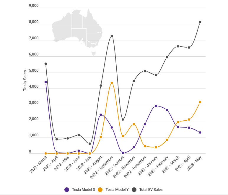 The Tesla Model Y has now been the best-selling EV in Australia for three months in a row – with 7,211 deliveries compared to 4,519 Tesla Model 3 sedans.