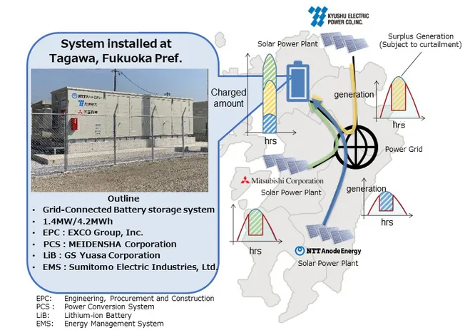 Since June 2022, our three companies have been pooling our respective management resources, know-how to jointly develop businesses that will both promote effective use of surplus solar power and leverage the development of additional power reserves. As the first step, from this July, by utilizing this grid-scale battery storage system installed in Tagawa-gun, we have established and are operating a business model that will minimize the curtailment of surplus renewables and supply power when supply-demand balance is tight. From April to June of 2023, when the amount of solar power curtailment increased, we conducted 47 cycles, representing a total energy charge and discharge of 260,000 kWh.