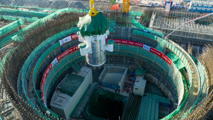 "This is the first milestone of the installation of the Linglong One nuclear island," CNNC said. "It marks the debut of modular manufacturing and installation of nuclear reactor modules, representing a historic step of global nuclear miniaturisation and highlighting China's leading position in the modular manufacturing of small pressurised reactor (PWR) units."