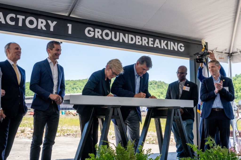 Groundbreaking for Form Energy’s iron-air battery manufacturing facility.Pictured left to right: Secretary Mitch Carmichael, West Virginia Department of Economic Development Secretary; Mateo Jaramillo, CEO and Co-Founder of Form Energy; Secretary Jennifer Granholm, U.S. Department of Energy Secretary; Senator Joe Manchin, (D-WV); Dot Gilliam, Equipment Maintenance Technician, Form Energy; Ted Wiley, President & COO of Form Energy. Credit: Form Energy