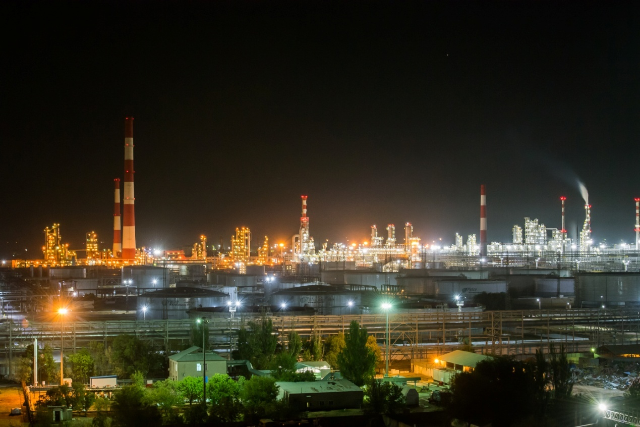 A night view of the Shymkent oil refinery in Kazakhstan. /Chinese Ministry of Commerce