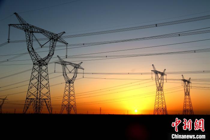 Photo shows a new energy power transmission line in Dunhuang city, northwest China's Gansu Province. (Chinanews.com/Zhang Xiaoliang)