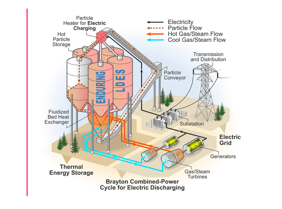The sand would be heated using electricity and held in tall concrete silos till it’s needed, cycling back after its heat is extracted by the heat exchanger to discharge the electricity. The researchers will test various sands to use for the storage medium, which once heated would pass through a heat exchanger to extract the heat to run the existing plant power cycle.