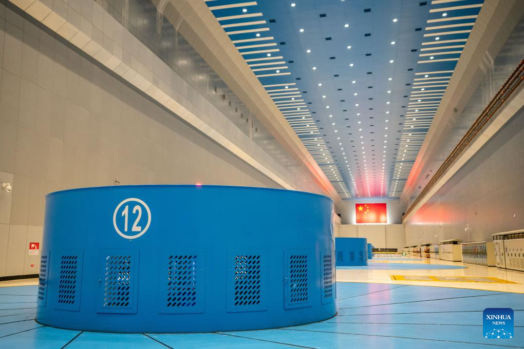 A staff member works at the Wudongde hydropower station on the border of Sichuan and Yunnan provinces in southwest China, Dec. 22, 2023. Wudongde hydropower station is a major national project to implement China's west-to-east power transmission program. (Xinhua/Hu Chao)