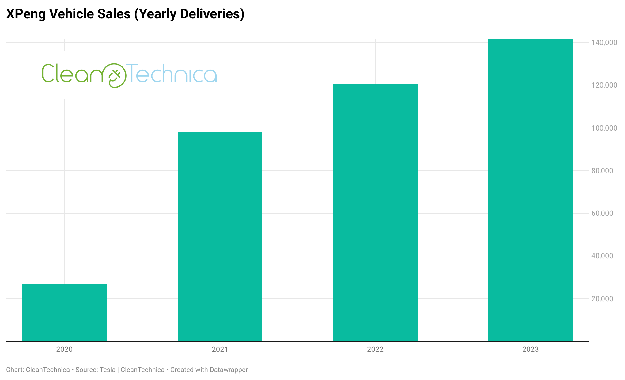 XPeng is no BYD or Tesla — it’s far away from the nearly 2 million BEV sales those companies reached in 2023. Nonetheless, it continues to grow strongly and can certainly dream about reaching the big 1 million BEVs a year milestone one day. In terms of 2023, XPeng saw its sales rise to 141,601 units. That’s a 17% increase year over year.