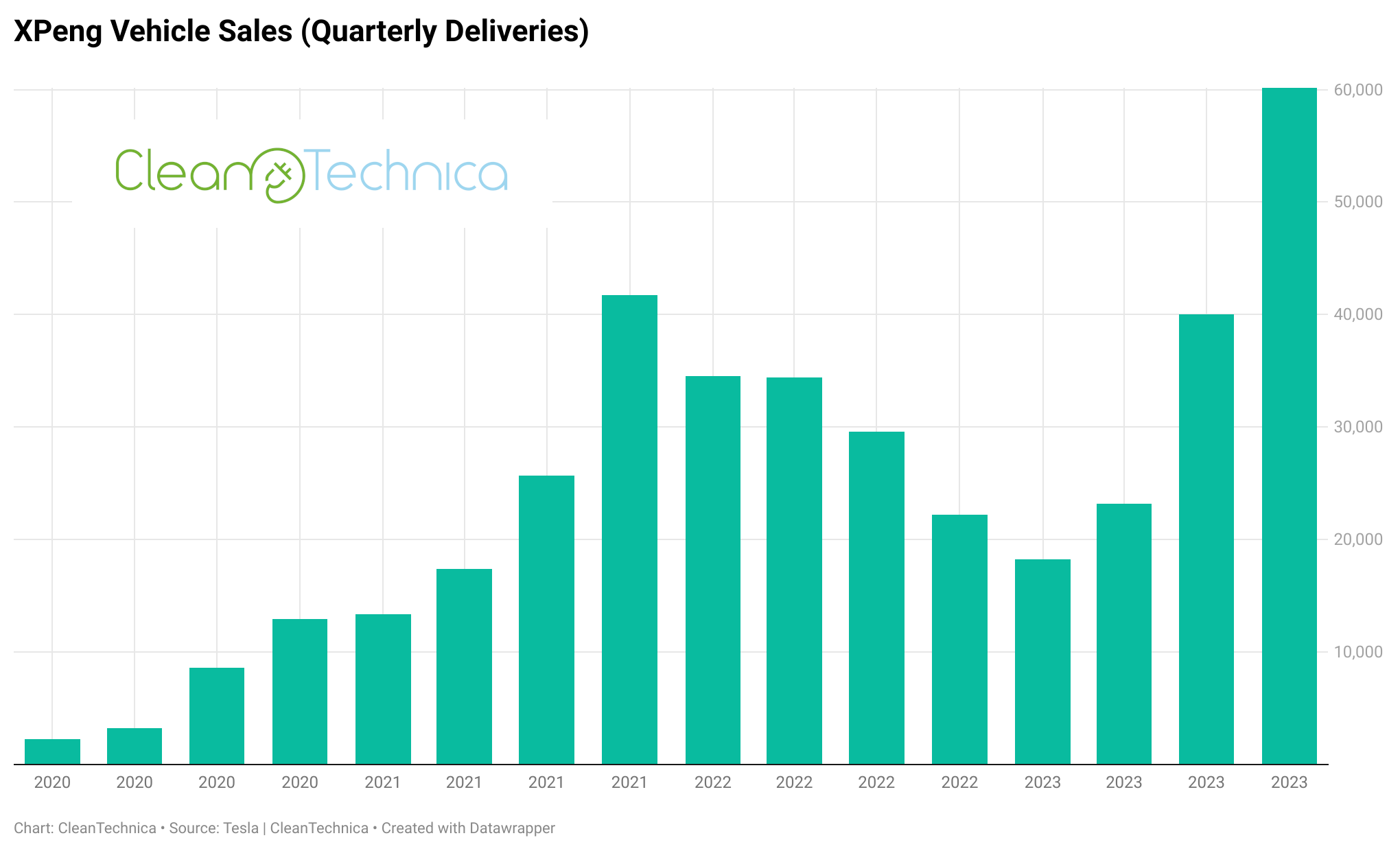 However, the much more exciting and impressive news is that XPeng’s Q4 sales were up 171% compared to Q4 2022. The company scored 60,158 deliveries in the 4th quarter, nearly half of XPeng’s deliveries all year! Unsurprisingly, that set a new quarterly sales record for XPeng. If XPeng could do slightly better than that through 2024 (a big if), it could even reach 200,000 sales a year.