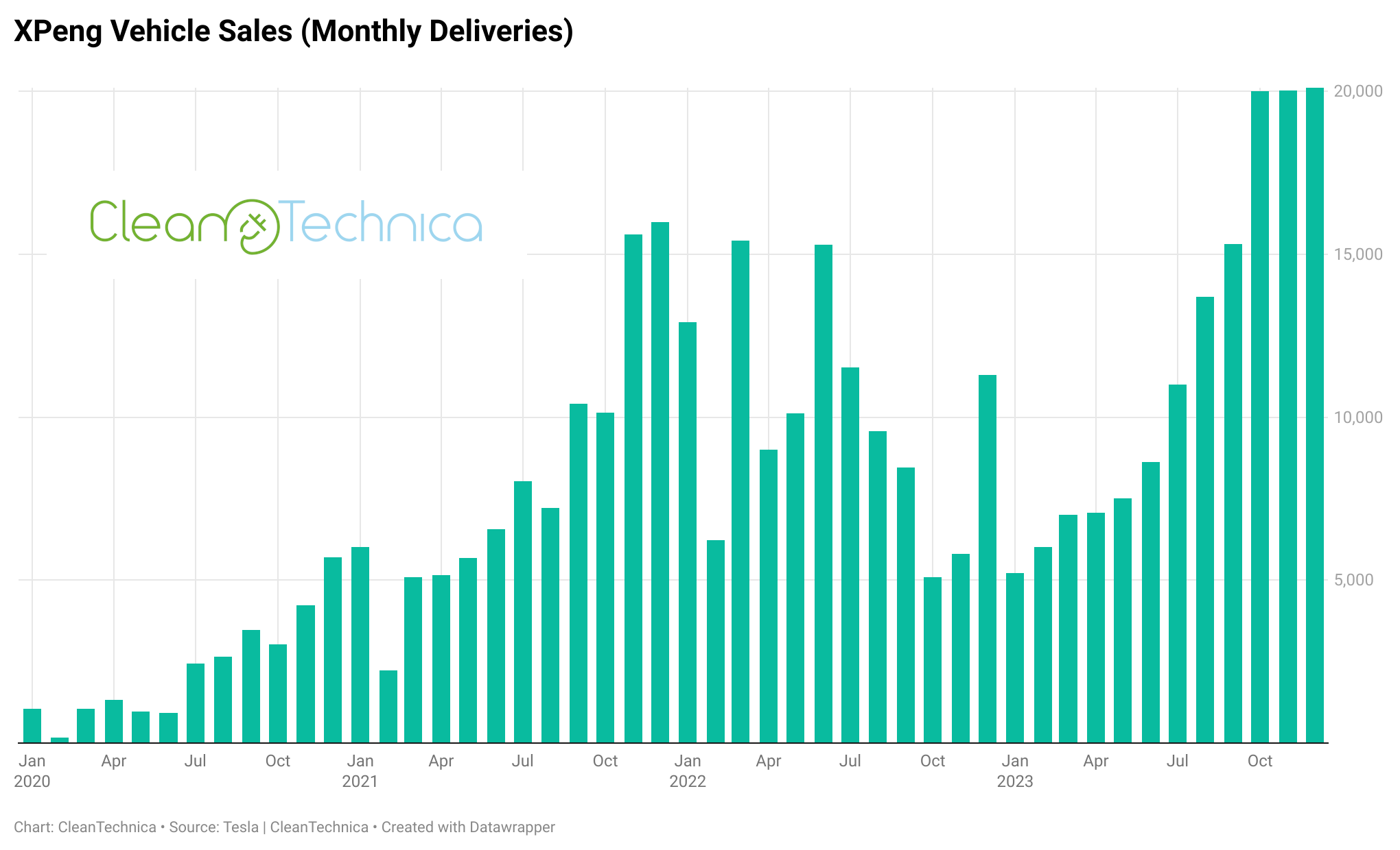 In December, XPeng landed 20,115 sales. That’s 78% more than in December 2022 and set a new monthly record for the company.