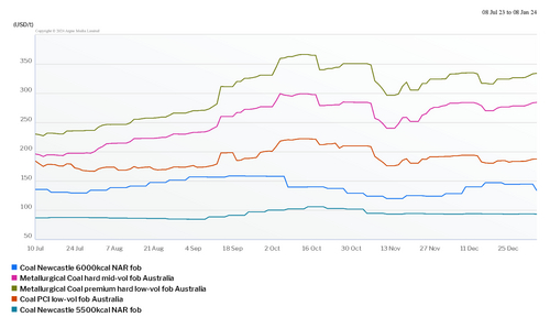 The Newcastle Coal Infrastructure Group (NCIG) does not release data for its terminal at Newcastle and the Port Authority of NSW has not yet released overall data for December. But initial shipping data suggests that NCIG also ended the year strongly and the wider port in 2023 exceeded its decade low of 136mn t of coal shipped in 2022 by at least 10mn t but come in short of the 156mn t shipped in 2021.