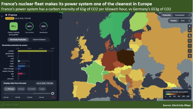 France’s nuclear fleet makes its power system one of the cleanest in Europe