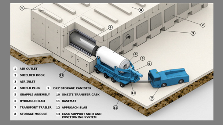 The Orano NUHOMS system securely stores the dry fuel storage containers in a horizontal position within a sturdy, low-profile, reinforced concrete structure (Image: Orano)