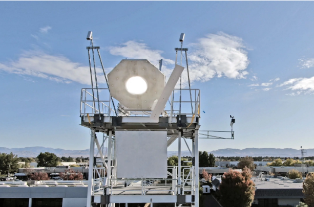 Heliogen mounts four cameras around the high-temperature receiver, set back enough to avoid the fiery blast. These cameras track not the sun itself but the halo of light around the celestial orb. When the cameras see the halo perfectly reflected in each of the mirrors, it means the sun itself is bouncing straight into the receiver. The system assesses the image of the field at a rate of 30 frames per second, following the sun through its daily migration and signaling the mirrors to move if they are out of line.