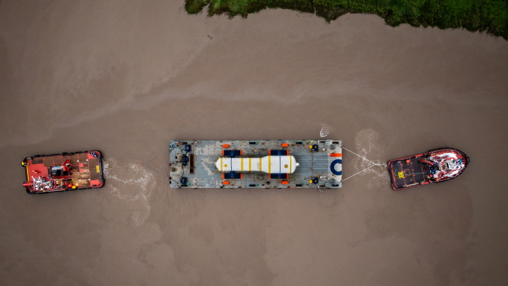 The steam generator travelling by barge to Combwich Wharf (Image: EDF Energy)