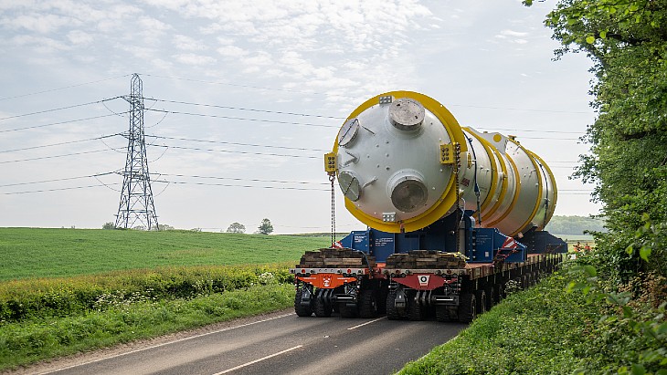 Measuring 25 metres in length and weighing 520 tonnes, the steam generator was transported by sea and road. The component travelled the final four miles by road transporter after arriving from Avonmouth at Combwich Wharf on the River Parrett in Somerset.