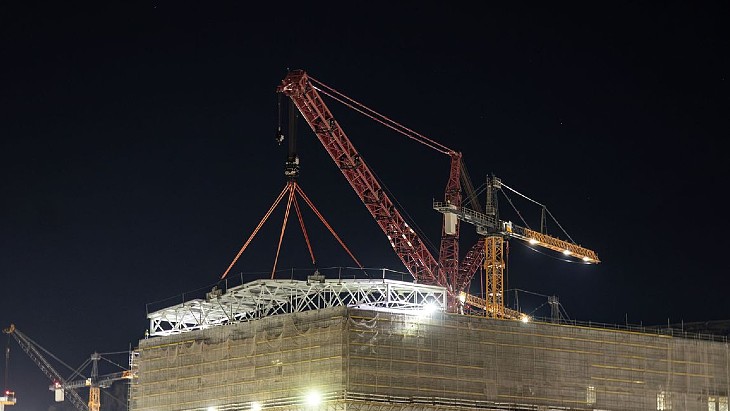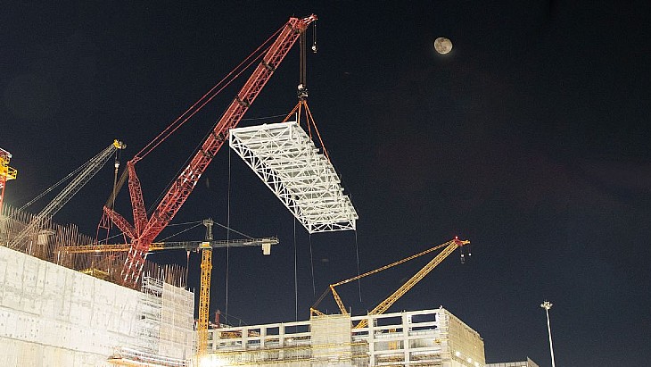 One of the sections is lifted under clear night skies (Image: Akkuyu Nuclear JSC)
