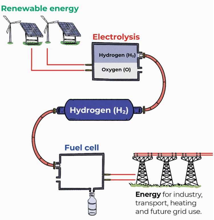 Hydrogen will complement batteries in sectors such as transport. Batteries are suitable for cars and city-bound buses and trucks, whereas hydrogen, which has a higher energy density, is better suited to cargo ships, interstate freight trains, and big trucks.